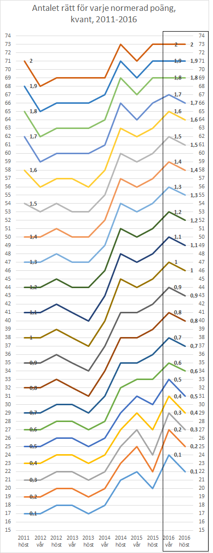 När det gäller kvant så är den för de flesta poängnivåerna lite lättare än förra årets som ju var rekordhög
